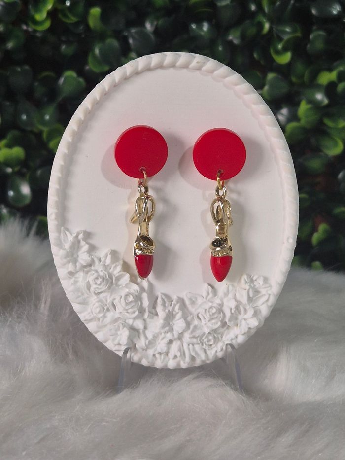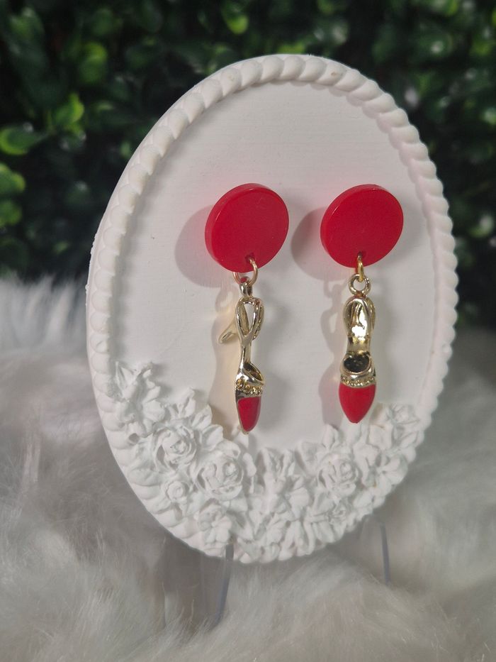 Boucles d’oreilles, chaussures en métal doré et rouge! 🤩👠✨ #Bijoux #Chaussures #Mode - photo numéro 3