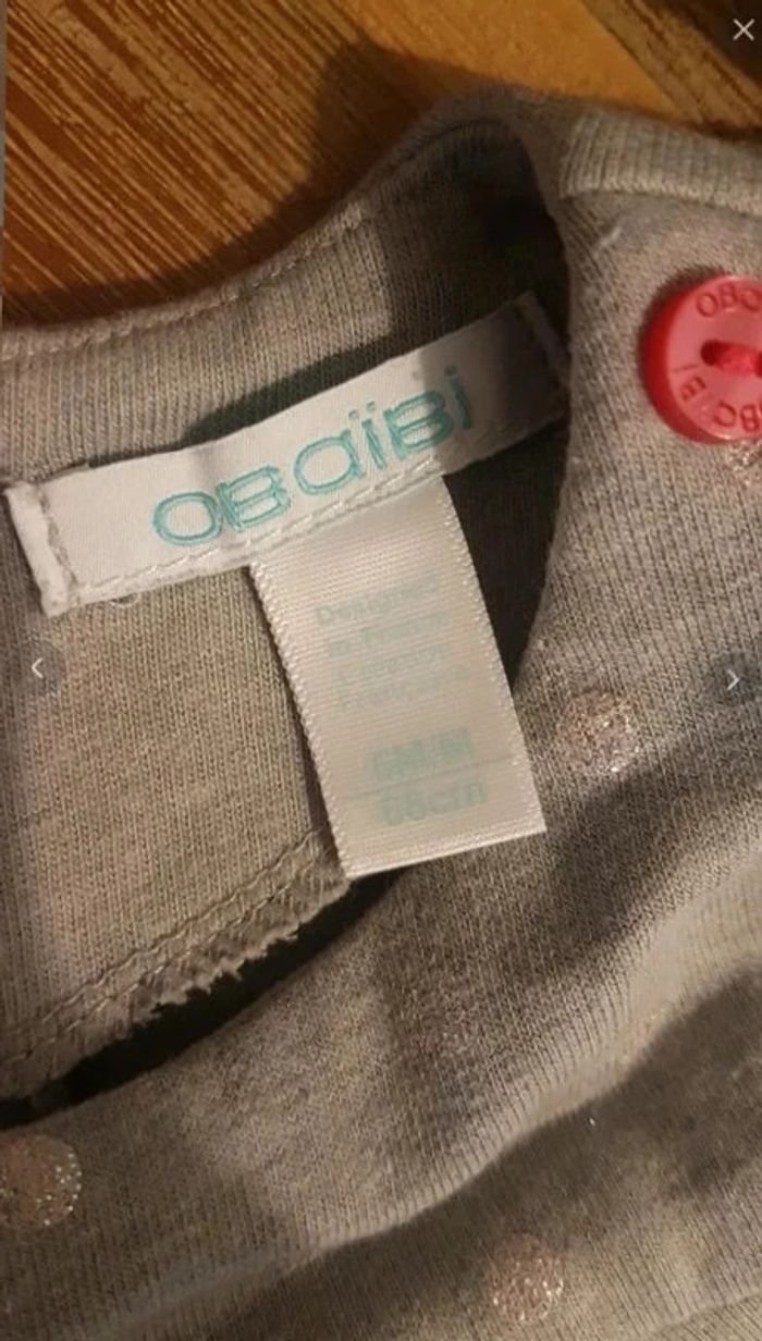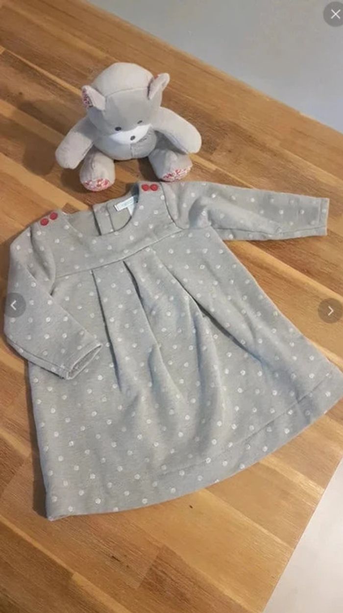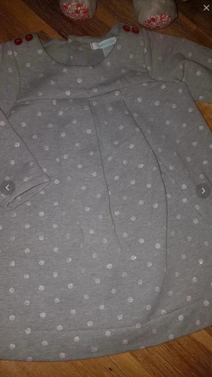 Robe à pois Pressions au dos Couleur: gris et pois rosé Très bon état Taille 6 mois