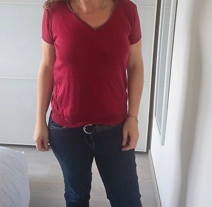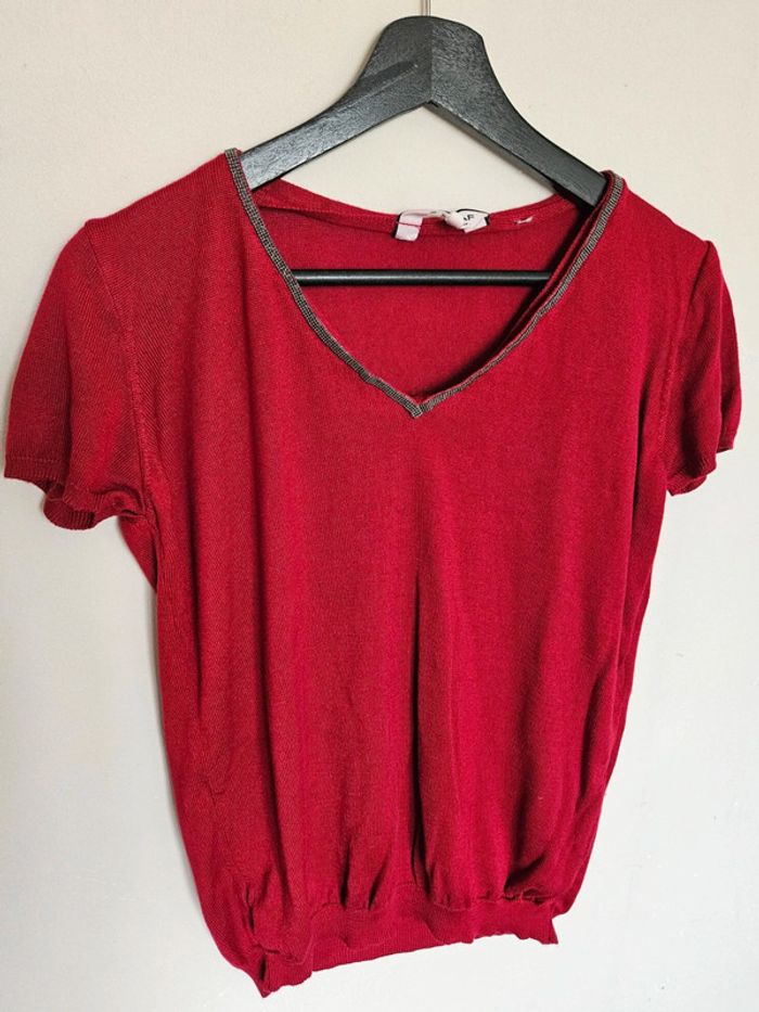 📌 Lot 20% de remise pour l'achat de 5 articles, suite ... Pull fin rouge, liseré doré sur le haut, manche courte, ➡️Largeur à plat sous les bras  48 cm ➡️Longueur 64 cm ➡️ 50 % acrylique 50 % viscose ⭐ Excellent état ✈Envoi rapide des colis 💗 Abonnez vous à mon profil, nombreux articles ajoutés régulièrement ! 🌸 Tapez Laetitresors pour voir mes annonces #laetitresors_pull38 #pull #manche #courte #nafnaf #courte #lisere #fin #laetitresors