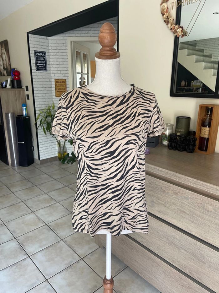 T shirt manche courte zèbre en très bon état Un peu détendu sur le bas ⚠️pas de Vinted go ♦️N’hésitez pas à faire des lots pour avoir une réductions et rentabilisé les frais de port!! ✈️ Envoie rapide et soigner #solinetteS