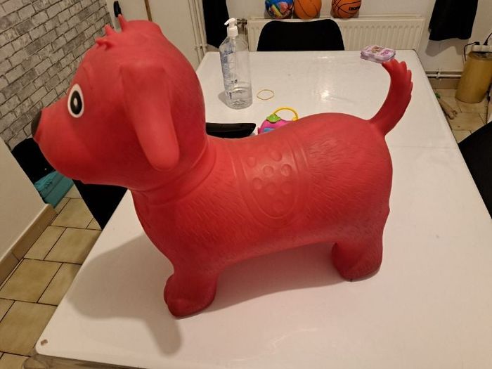 Petit chien sauteur dimension en photo Avec la pompe .