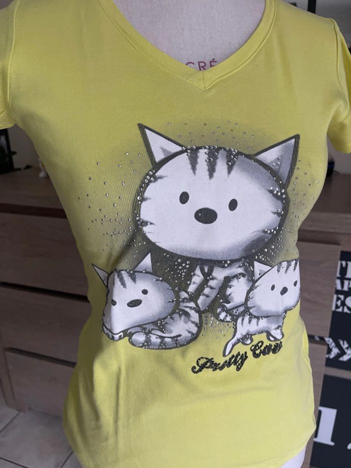 T shirt manche courte en très bon état taille 0 correspond à un XS Avec strass ⚠️ pas de Vinted go ♦️ N’hésitez pas à faire des lots pour avoir une réductions et rentabilisé les frais de port!! ✈️ Envoie rapide et soigner #solinetteXS
