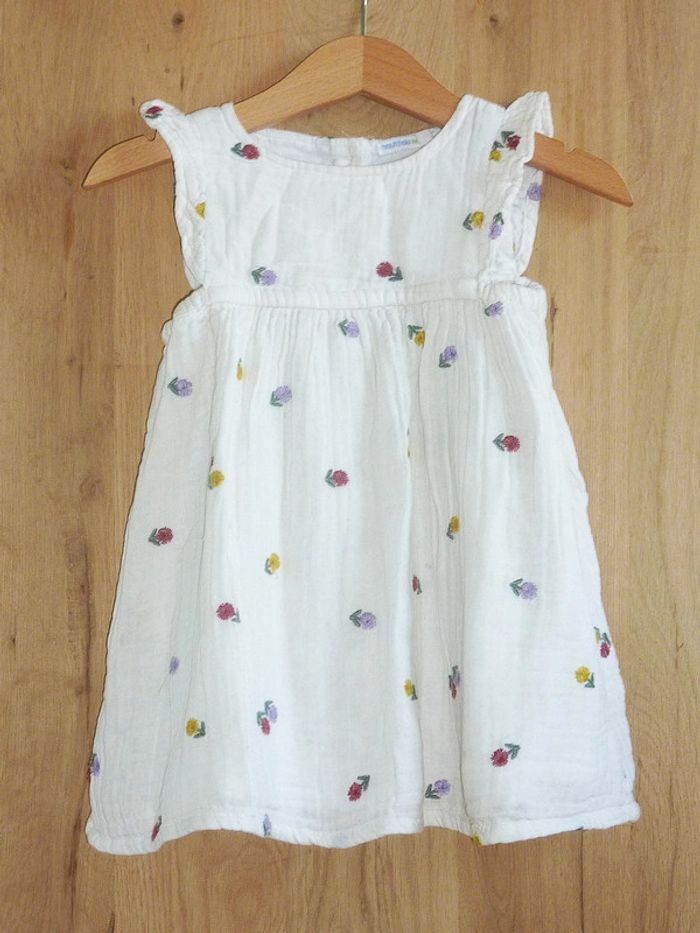 Pour voir mes annonces dans cette taille, tapez: #karinelillefille9mois Robe blanche en gaze de coton, imprimé fleuri brodé, en très bon état