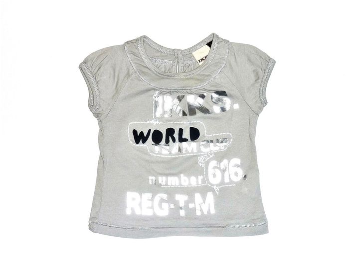 #karinelillefille3mois Tee shirt de marque IKKS en excellent état gris perle, avec ses inscriptions noires et argentées. Très tendance !