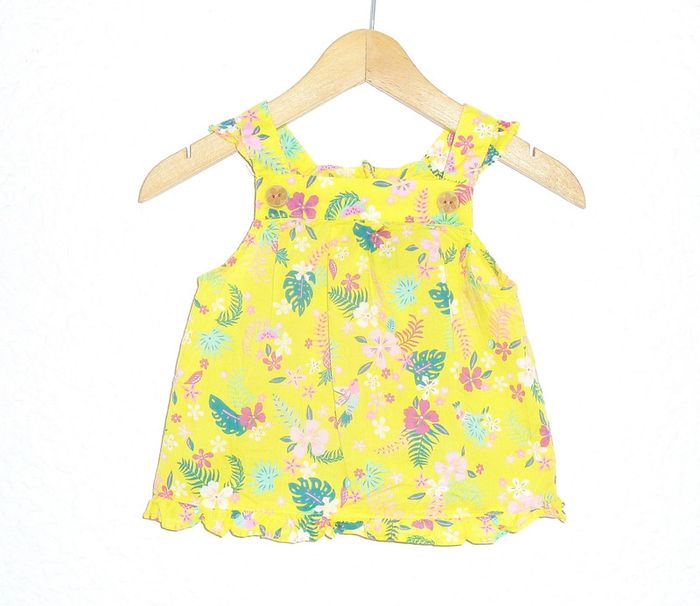 Pour voir mes annonces dans cette taille tapez #karinelillefille12mois Top de marque sergent major imprimé fleuri vert et rose sur fond jaune vif Dressing visible à Montpellier