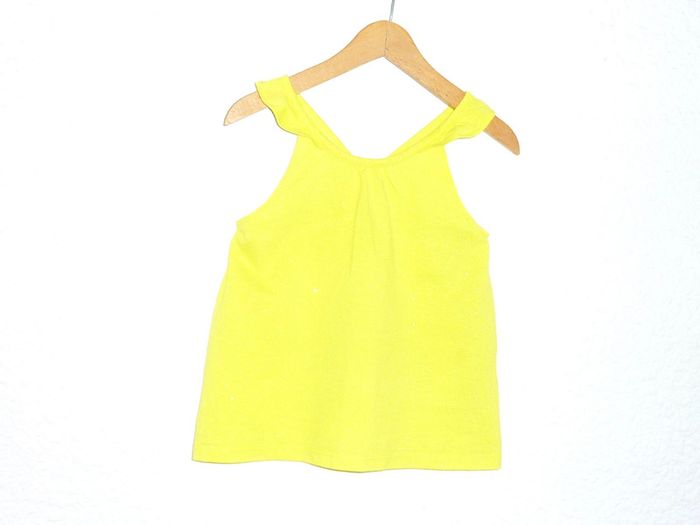 Pour voir mes annonces dans cette taille, tapez #karinelillefille3ans ☀️ Faites des lots ☀️ Débardeur jaune pailleté à bretelles volantées en excellent état
