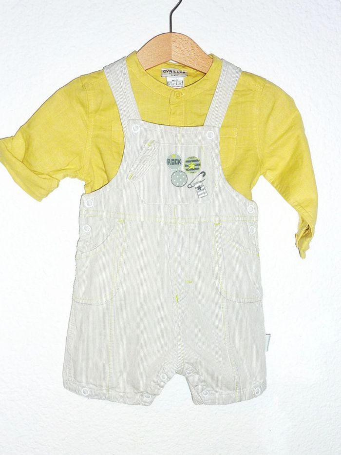 Pour voir mes annonces dans cette taille, tapez: #karinelillegarcon9mois Ensemble en état excellent. Composé d'unes salopette courte couleur grise à rayures. Ouverture par pressions à l'entrejambe, ornée d'un petit motif et associée à la chemise Cyrillus jaune en lin. Dressing visible à côté de Montpellier