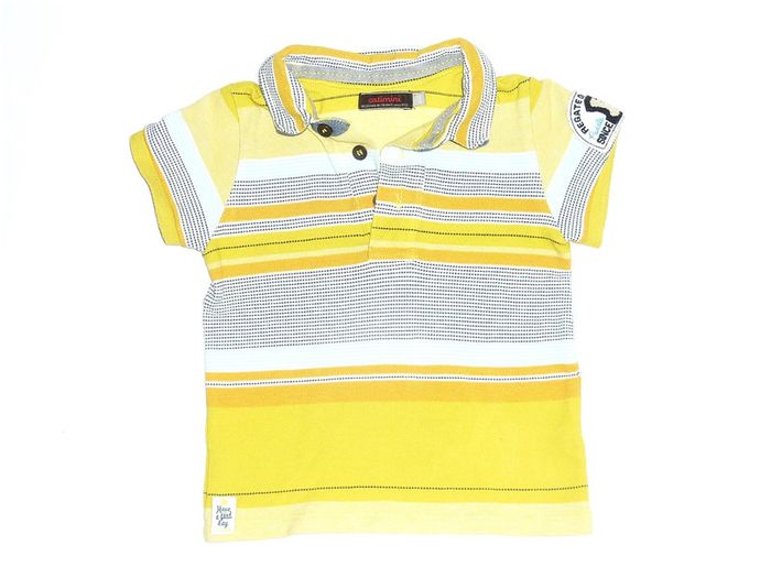 #karinelillegarcon18mois Etat impeccable pour ce polo de marque CATIMINI en maille piquée. Jaune et bleu à rayures. Du soleil dans le dressing de votre bébé ! Dressing visible à côté de Montpellier