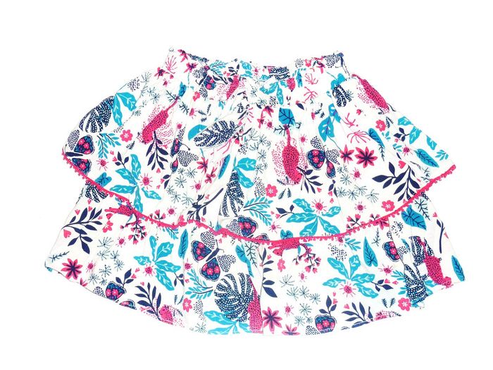 Pour voir mes annonces dans cette taille, tapez #karinelillefille6ans Jupe volantée en parfait état, imprimé fleuri turquoise et rose sur fond blanc, ceinture élastique.