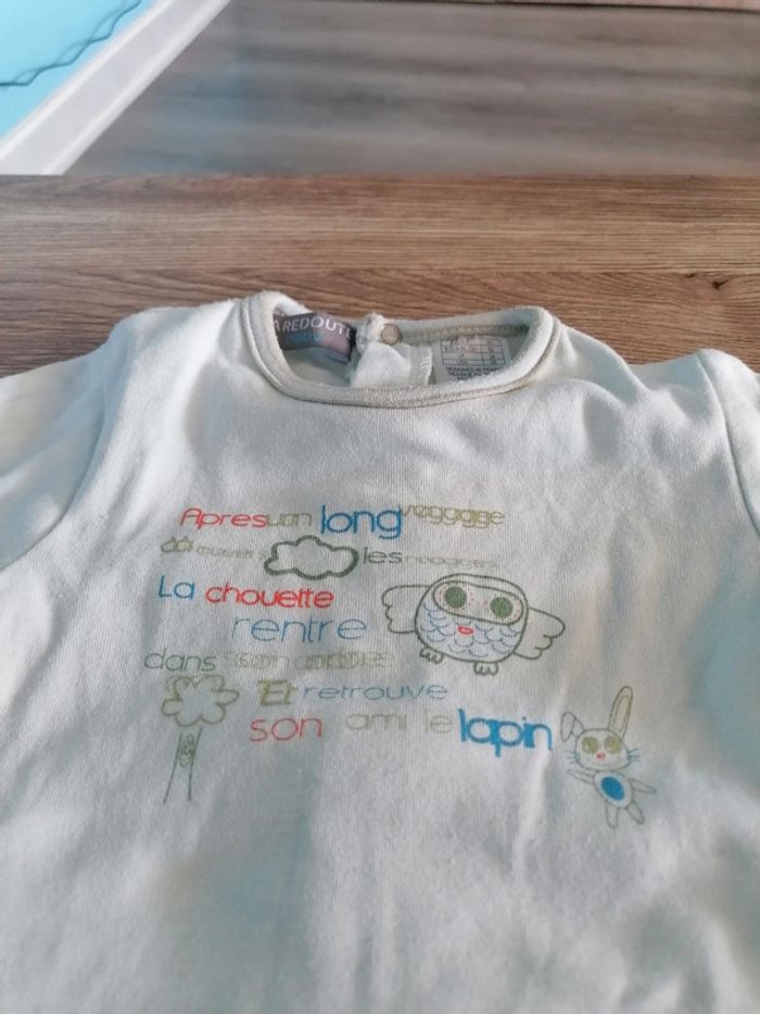 Bonjour, je vends ce pyjama blanc et beige de la marque La redoute taille 3mois en très bon état. Lavé maison non fumeur.