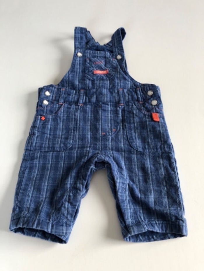 Salopette bébé rayé. 100% coton et doublure 100% coton. Ouverture par boutons pressions qu’ainsi à l’entrejambe. Marque Orchestra. Taille 3 mois