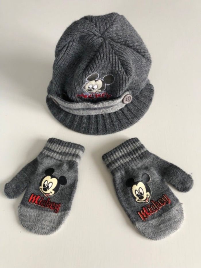 Bonnet/casquette (100% acrylique) + gants assortis (95% acrylique + 5% elasthanne). Taille 2.