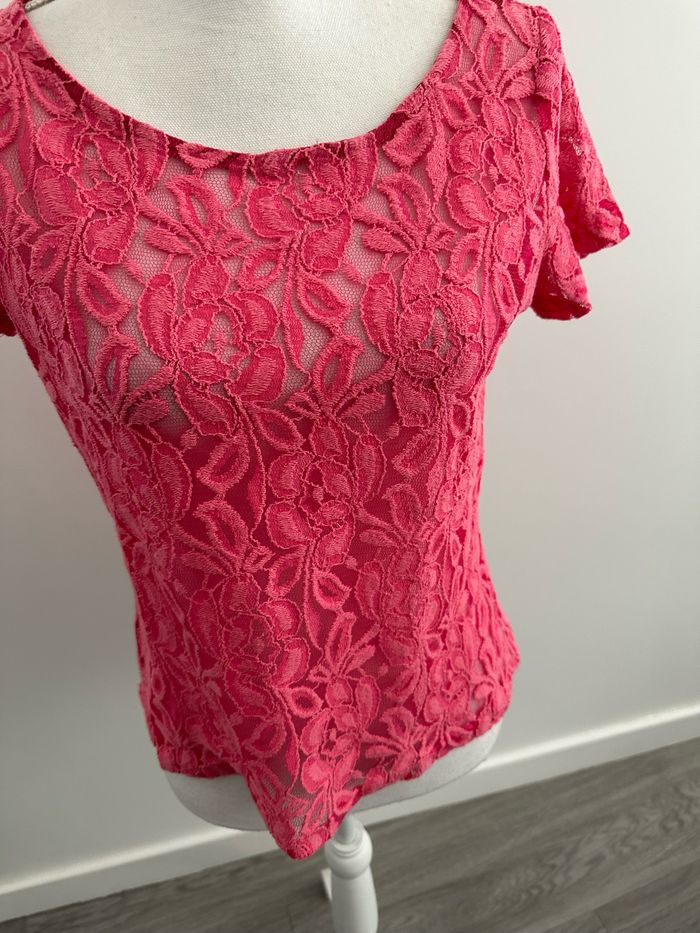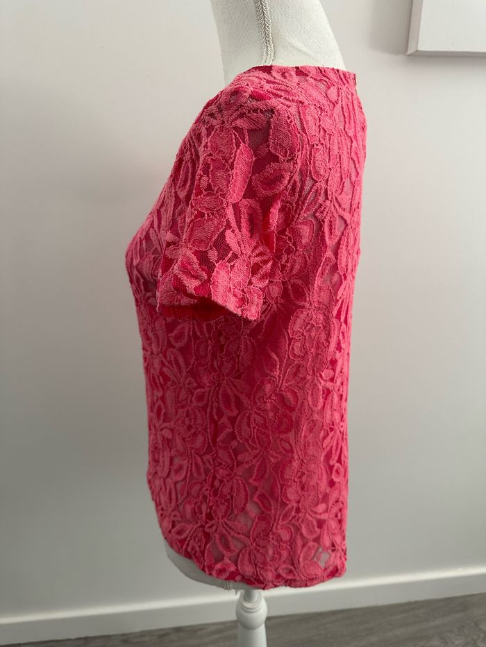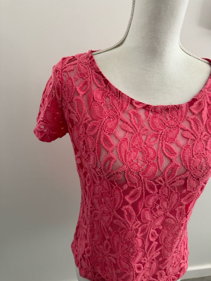 T-shirt en dentelle broderies dentelle mesh rose bonbon Y2K T38 M - photo numéro 1