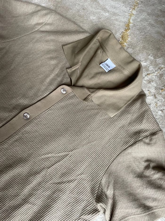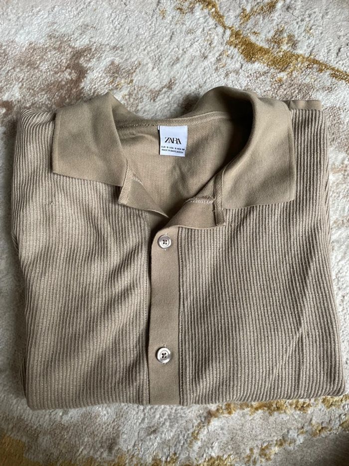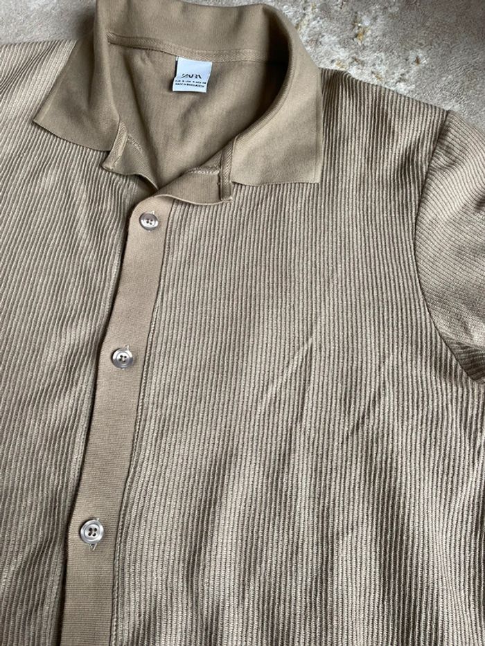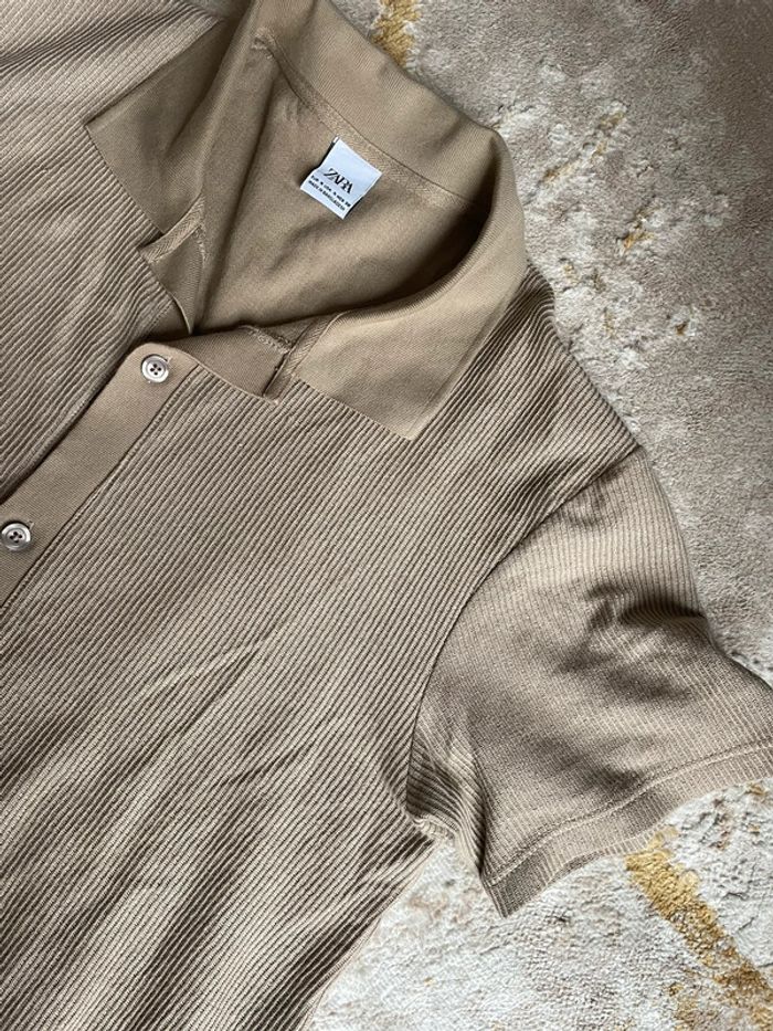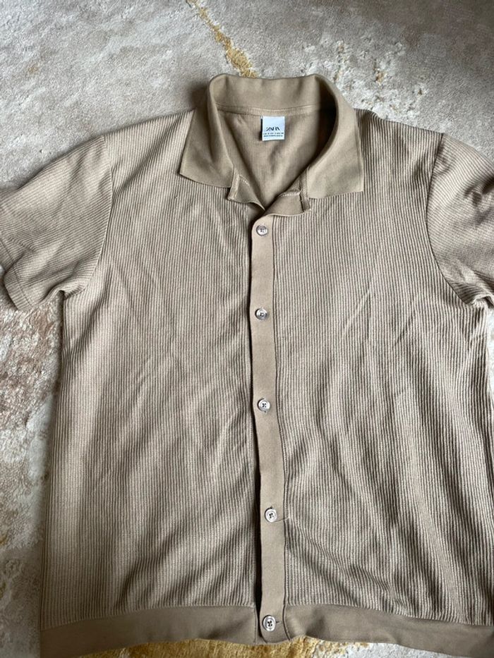 T-shirt chemise beige/marron homme Zara - photo numéro 1