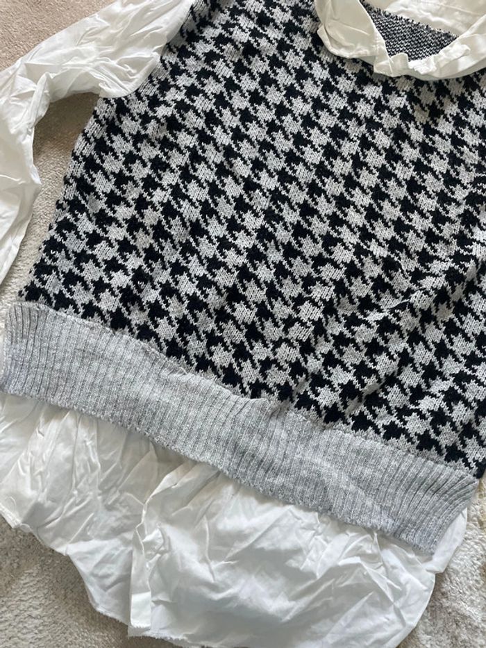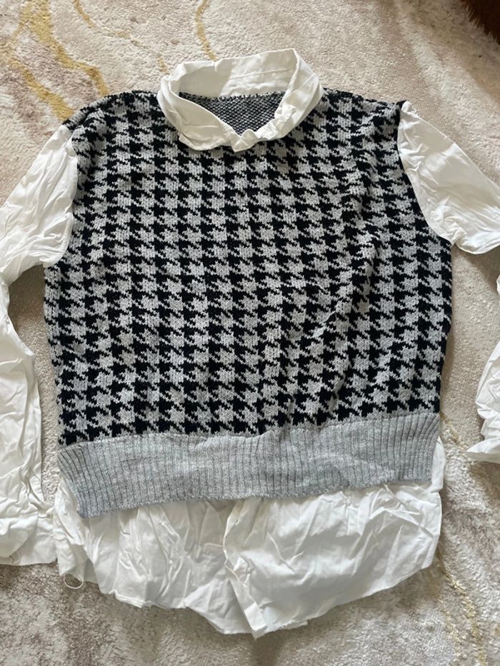 Pull à carreaux + chemise blanche - photo numéro 1