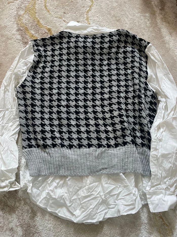 Pull à carreaux + chemise blanche - photo numéro 3