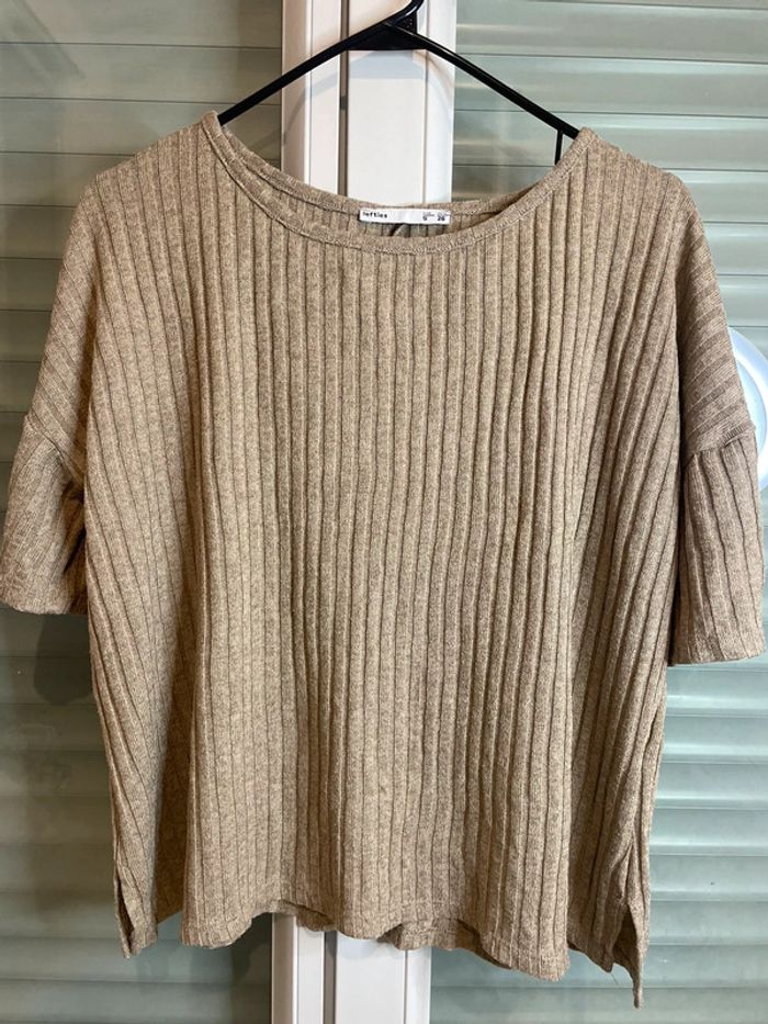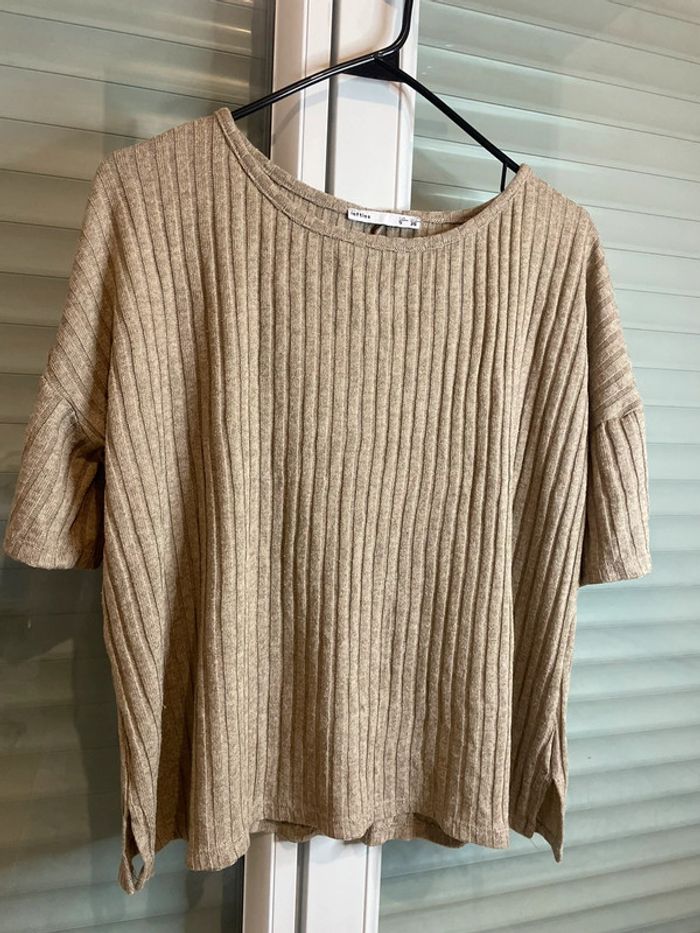 Haut manche courte beige pour femme Taille S Bon état général. Mini trou ( voir photo )
