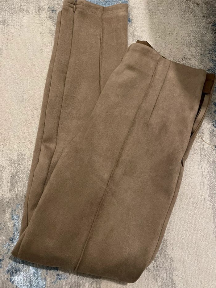 Pantalon droit effet velours marron/crème - photo numéro 4