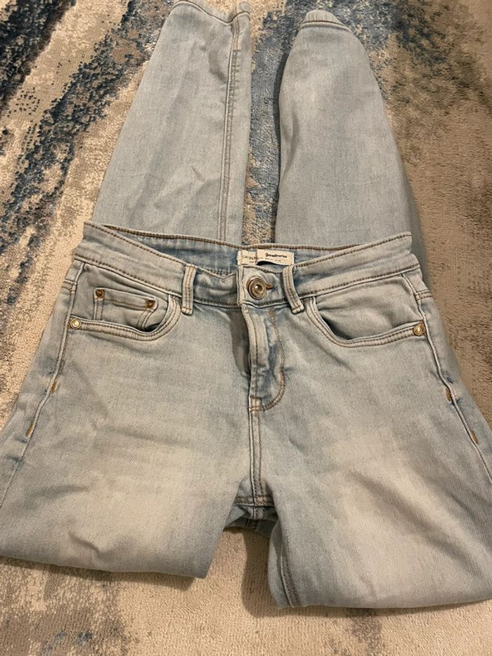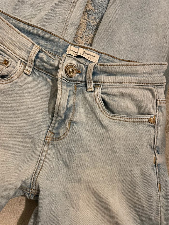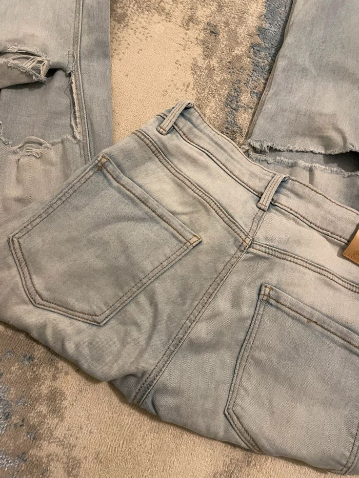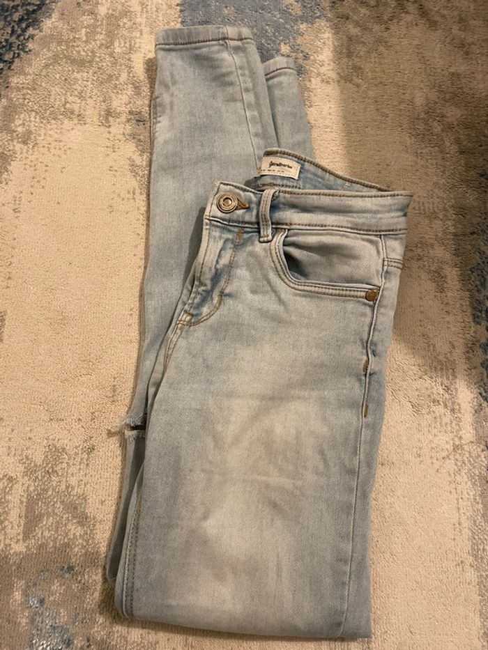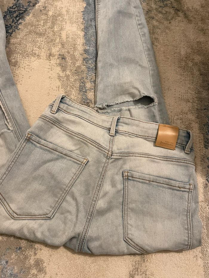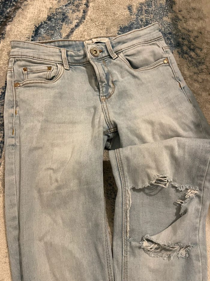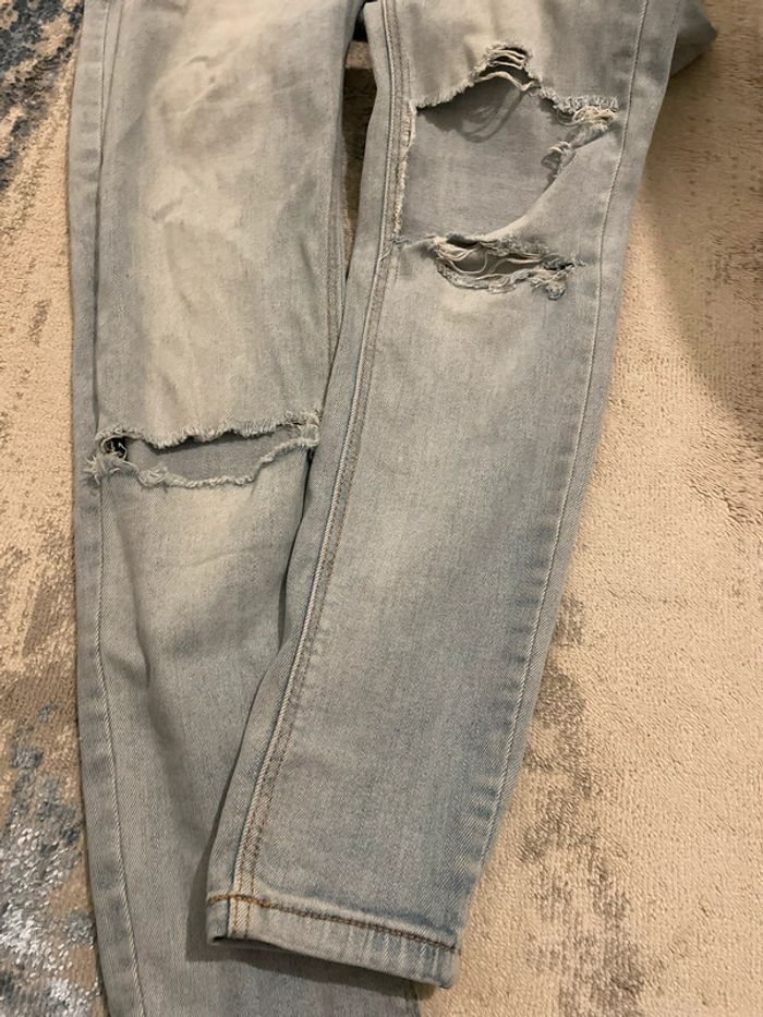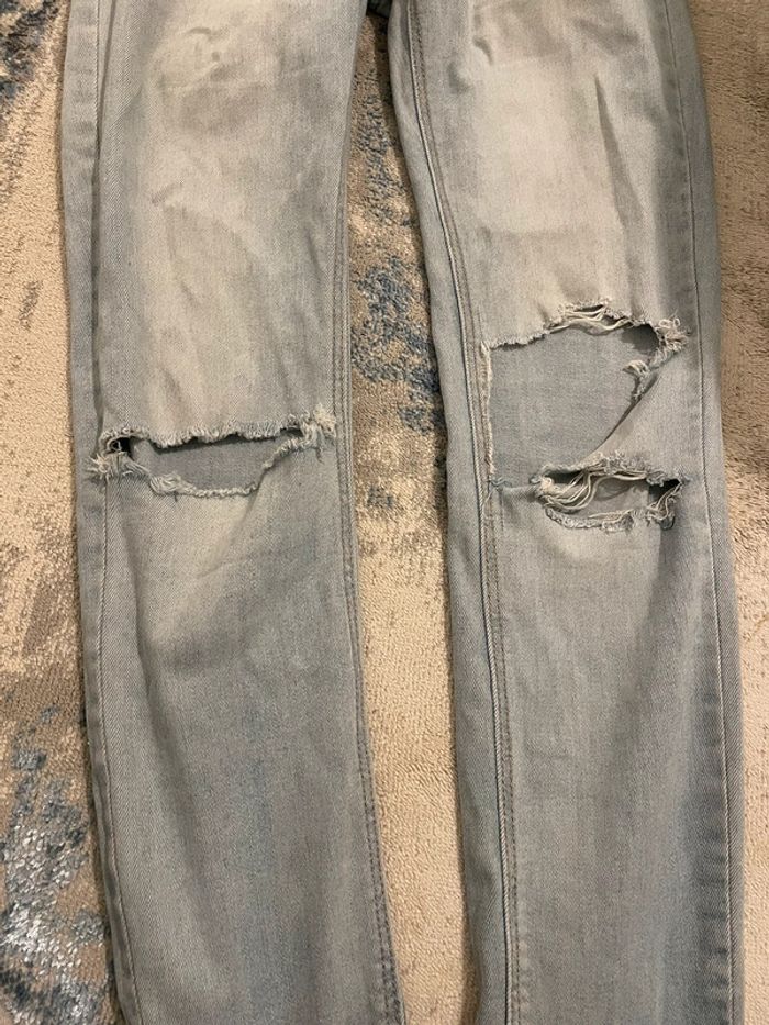Jeans skinny bleu clair à trou au niveau des genoux. Beau rendu lorsqu’on le porte Taille 34 Bon état