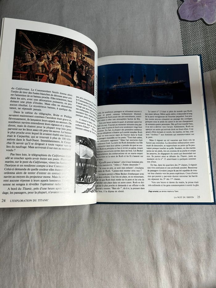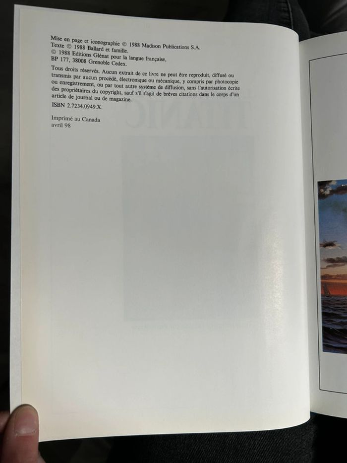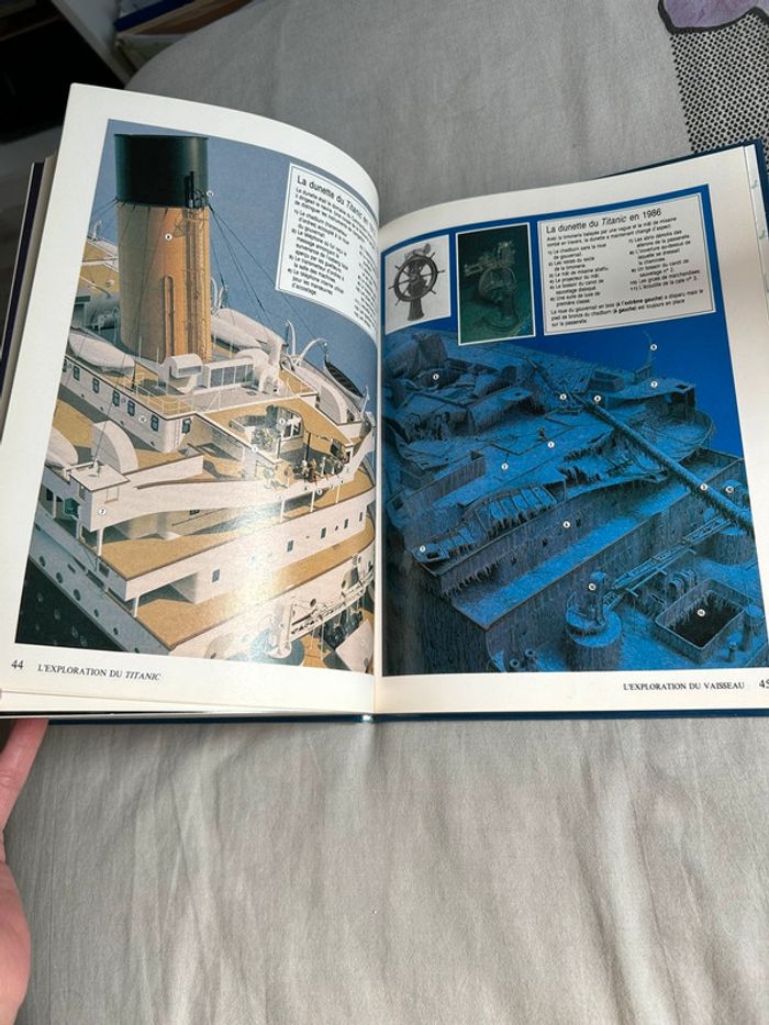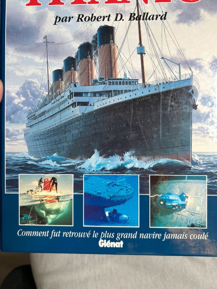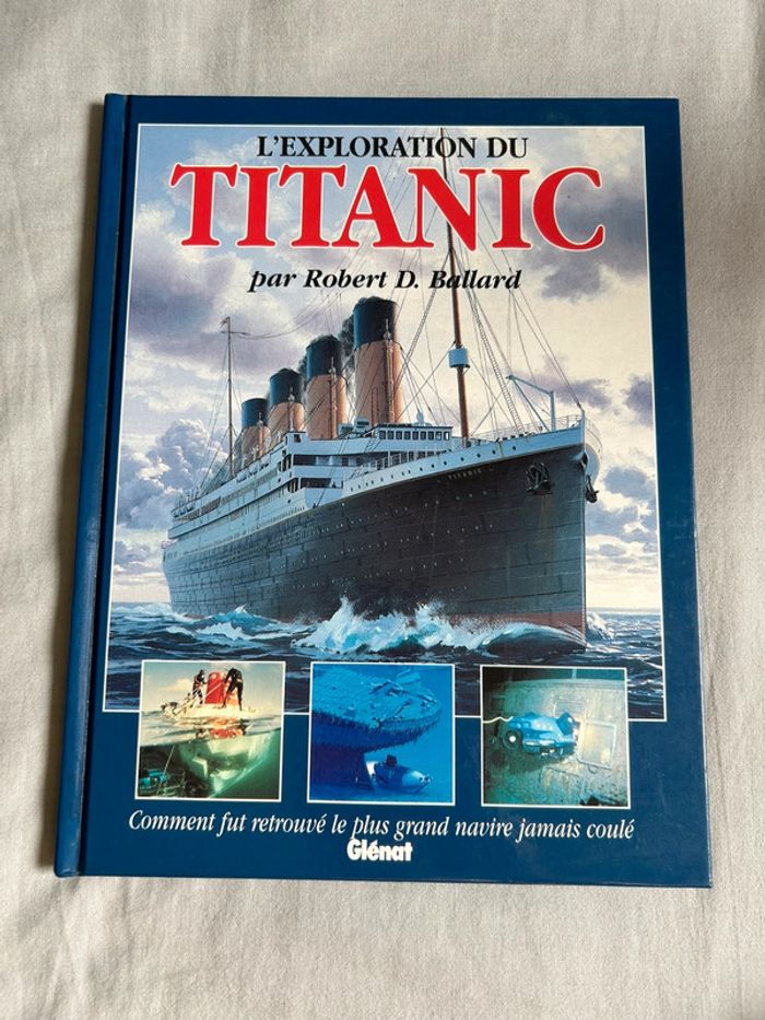 Livre l’exploration du Titanic éditions Glénat 1988 et imprimé en 1998 pages intactes , la reliure sur la première page d’ouverture a une trace voir photos numéro 5 et la couverture devant derrière est en bon état quelques rayures du au stockage