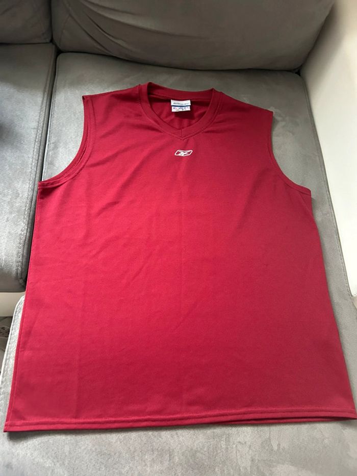 débardeur reebok vintage coloris bordeaux taille L très bon état il y a juste une petite maille qui ressort sur le devant voir photos N’hésitez pas si vous avez besoin de prise de mesures