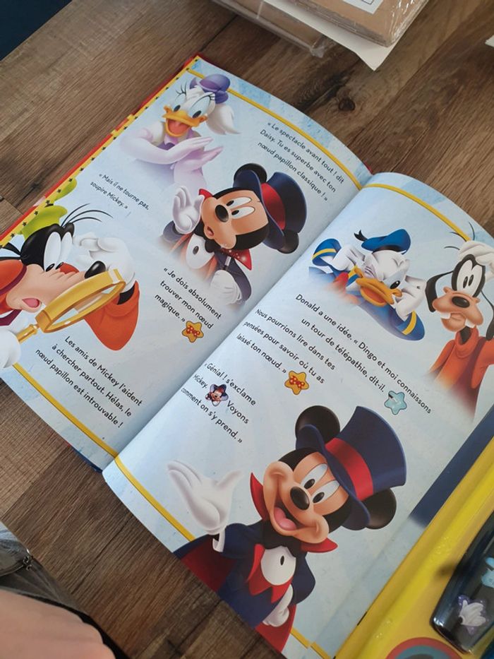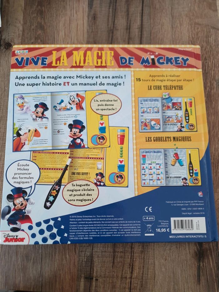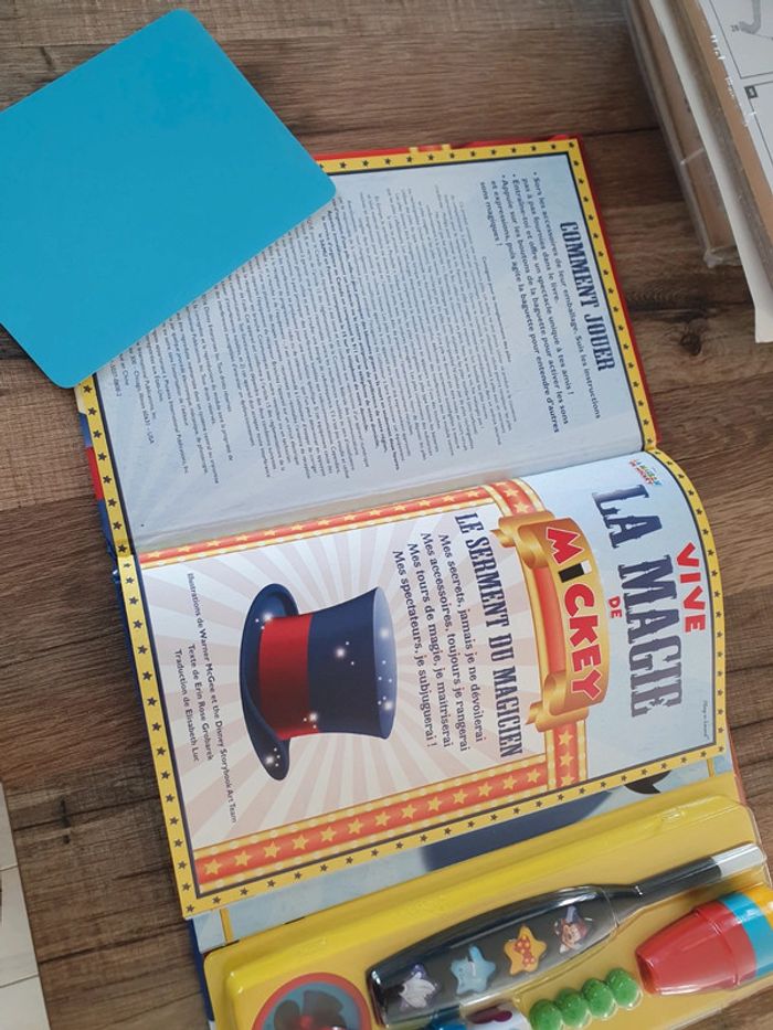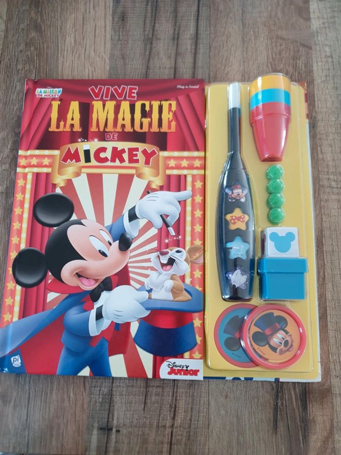 Livre de magie avec Mickey Très bon état et complet. Il faudra juste changer la pile de la baguette.