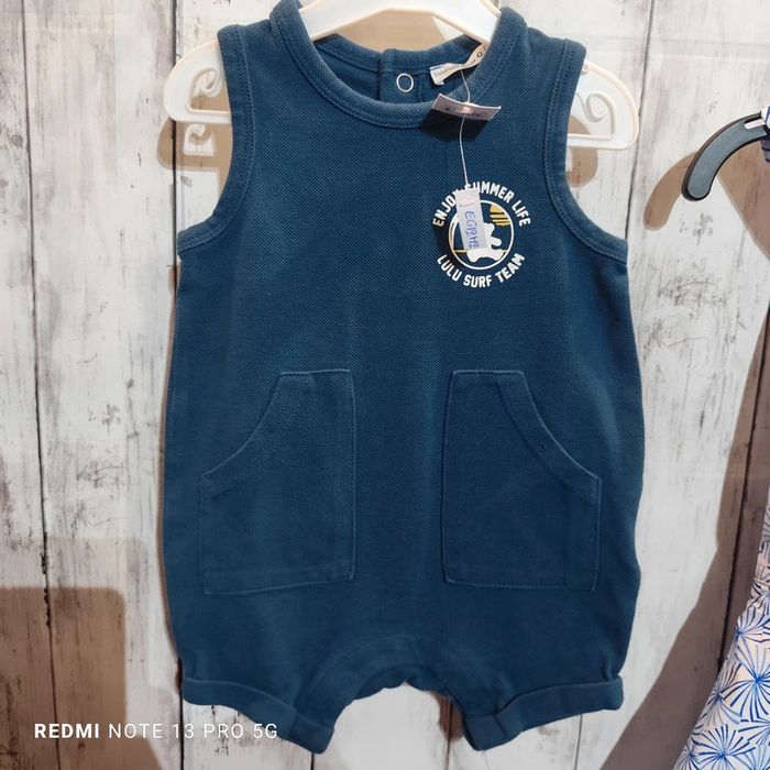 Petite barboteuse pour garçon en 12 mois J'ai énormément d'articles à vendre de la naissance à la taille M filles et garçons n'hésitez pas a demander si vous cherchez des articles. Je publie petit à petit mais vous pouvez me demander les tailles qui vous intéressent.
