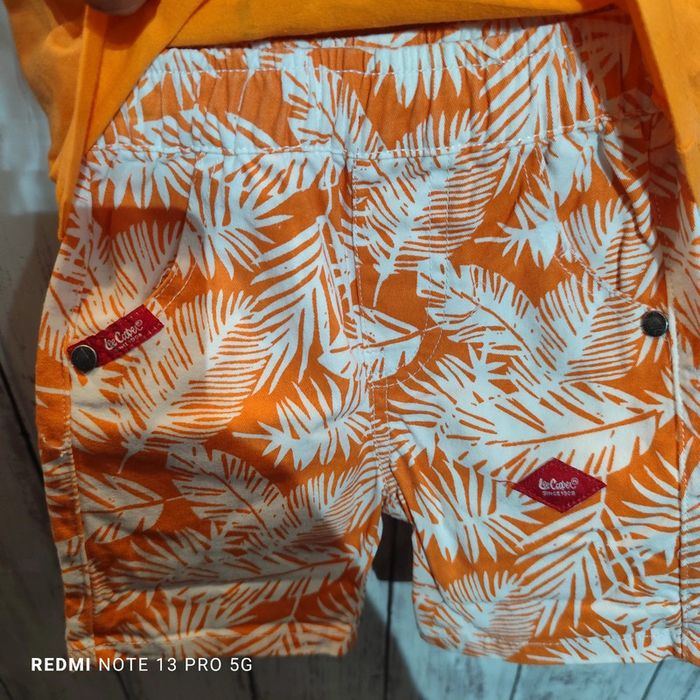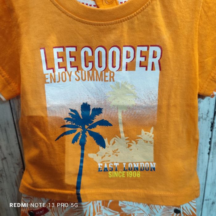 Très jolie ensemble Lee Cooper en 6 mois avec t.shirt et short avec taille élastique. J'ai énormément d'articles à vendre de la naissance à la taille M filles et garçons n'hésitez pas a demander si vous cherchez des articles. Je publie petit à petit mais vous pouvez me demander les tailles qui vous intéressent.