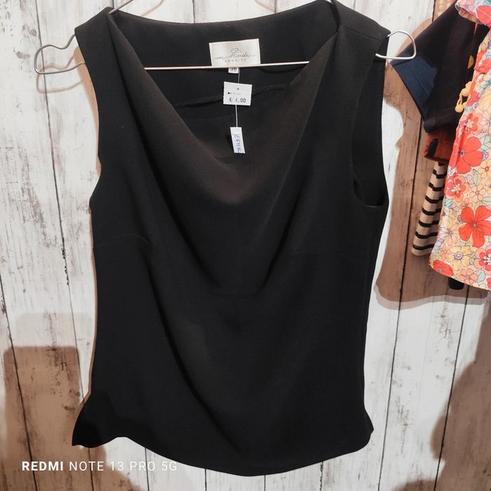 Haut noir à col légèrement bouffant J'ai énormément d'articles à vendre de la naissance à la taille M filles et garçons n'hésitez pas a demander si vous cherchez des articles. Je publie petit à petit mais vous pouvez me demander les tailles qui vous intéressent.