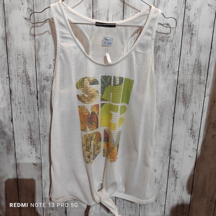 Débardeur légèrement jaunie au dessous des aisselles J'ai énormément d'articles à vendre de la naissance à la taille M filles et garçons n'hésitez pas a demander si vous cherchez des articles. Je publie petit à petit mais vous pouvez me demander les tailles qui vous intéressent.