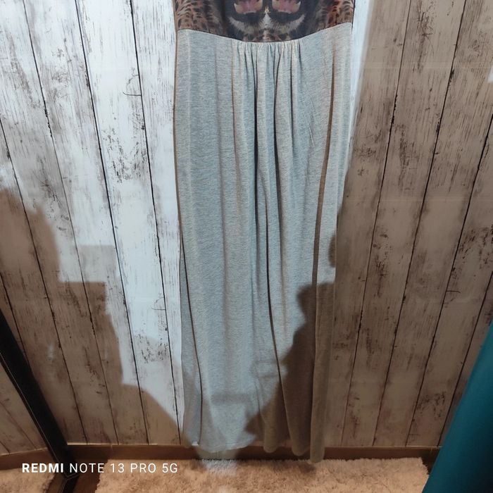 Robe longue avec tête de léopard. Fermeture éclair à l'arrière. J'ai énormément d'articles à vendre de la naissance à la taille M filles et garçons n'hésitez pas a demander si vous cherchez des articles. Je publie petit à petit mais vous pouvez me demander les tailles qui vous intéressent.