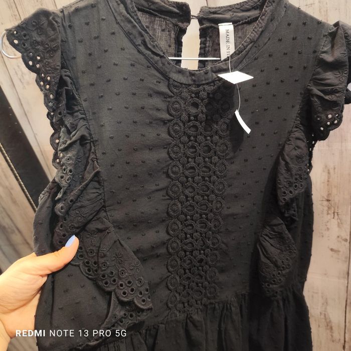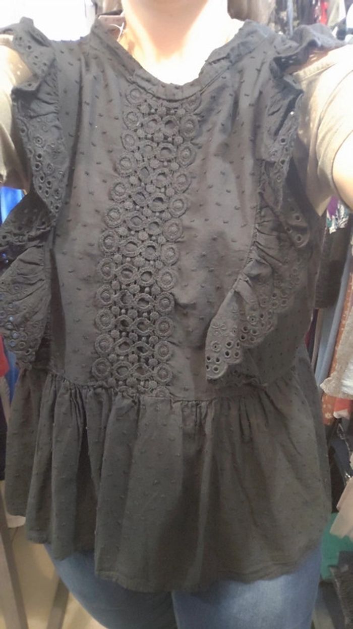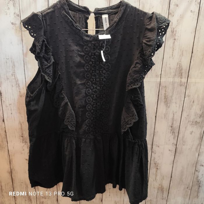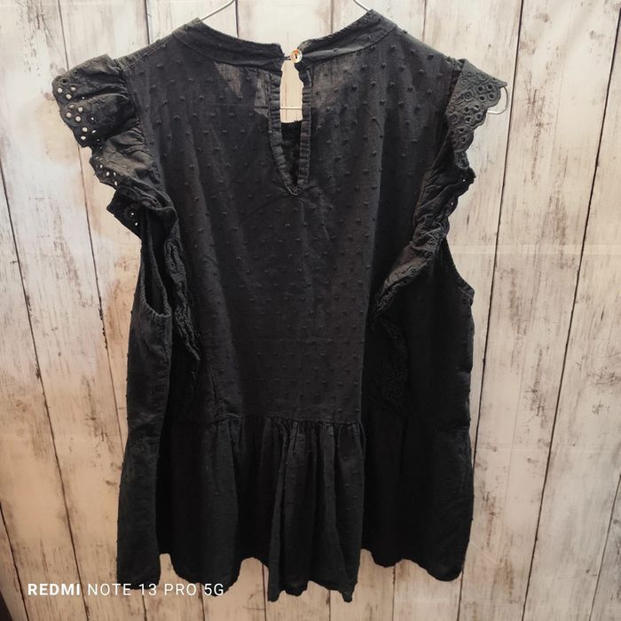 Haut d'été matière légère avec de petits "froufrous" sur les côtés. Large sur le bas et fermé a l'arrière par un bouton. Je tiens une boutique de seconde main de la naissance à la taille M. J'ai énormément d'articles si vous recherchez quelque chose en particulier n'hésitez pas à me contacter je commence à peine a publier quelques articles!! Les envois se font le mercredi et le samedi si commande la veille avant 18h pour une commande urgente contactez moi avant de passer commande.