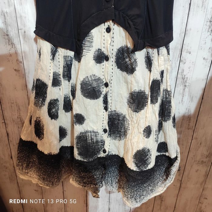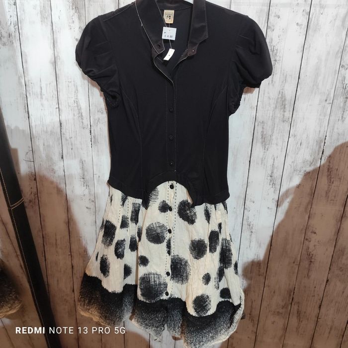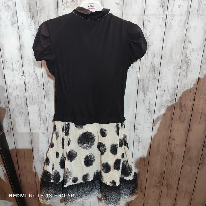 Robe assez légère, bi matière taille S. Je tiens une boutique de seconde main de la naissance à la taille M. J'ai énormément d'articles si vous recherchez quelque chose en particulier n'hésitez pas à me contacter je commence à peine a publier quelques articles!! Les envois se font le mercredi et le samedi si commande la veille avant 18h pour une commande urgente contactez moi avant de passer commande.