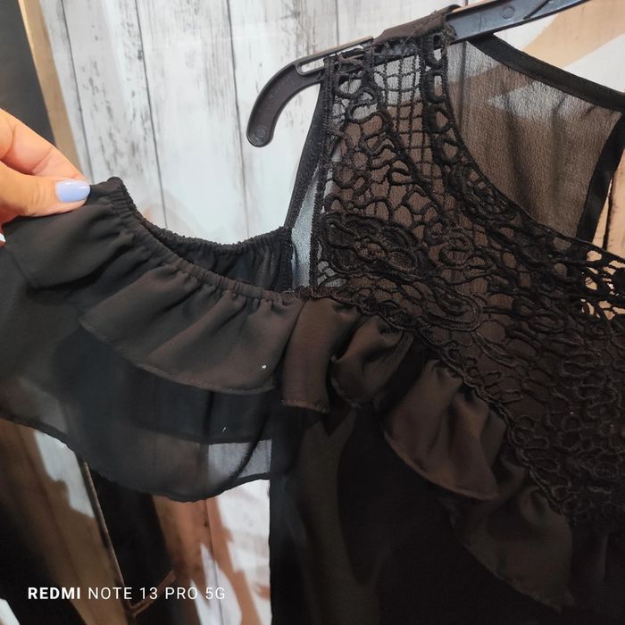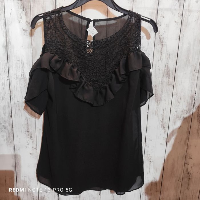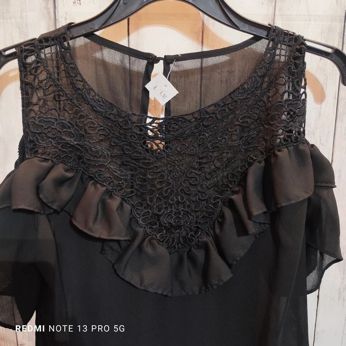 Dentelle sur le haut, légèrement transparent. Manches en 2 parties voir photos. Je tiens une boutique de seconde main de la naissance à la taille M. J'ai énormément d'articles si vous recherchez quelque chose en particulier n'hésitez pas à me contacter je commence à peine a publier quelques articles!! Les envois se font le mercredi et le samedi si commande la veille avant 18h pour une commande urgente contactez moi avant de passer commande.