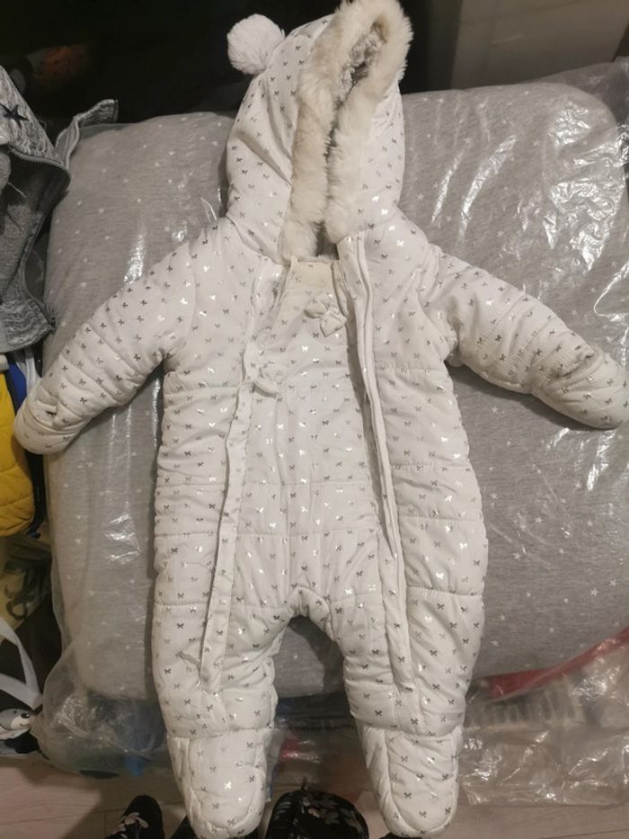 Magnifique combinaison, portée mais en bon état. Toute douce à l'intérieur. Matière légèrement plastifiée sur le dessus. N'hésitez pas à faire un lot des remises s'appliquent automatiquement Abonnez vous pour suivre les nouveautés j'ai encore plein de choses à vendre puériculture vêtements, chaussures... des que j'arriverai à trouver du temps ou demandez moi directement si vous cherchez quelque chose. 😊😊