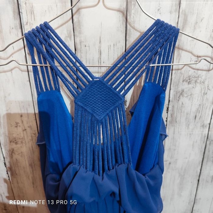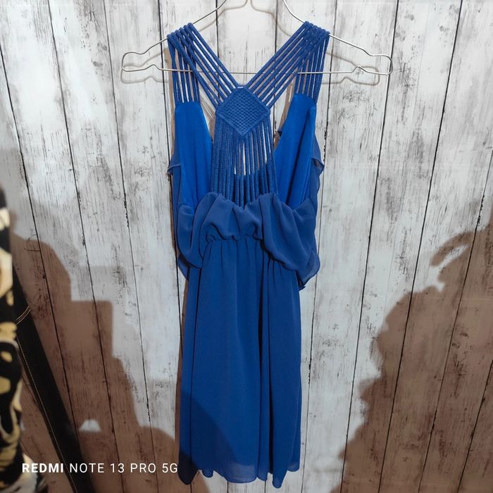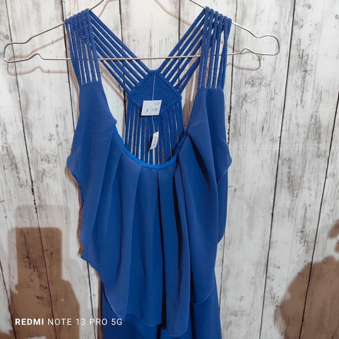 Robe d'été doublée dessous et voile dessus. La doublure comporte une dentelle sur le bas. Je tiens une boutique de seconde main de la naissance à la taille M. J'ai énormément d'articles si vous recherchez quelque chose en particulier n'hésitez pas à me contacter je commence à peine a publier quelques articles!! Les envois se font le mercredi et le samedi si commande la veille avant 18h pour une commande urgente contactez moi avant de passer commande.