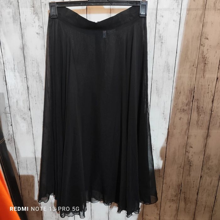 Jupe longue en voile. Pas de doublure donc transparente. Pas de taille de mentionnée mais correspond à un petit M. Je tiens une boutique de seconde main de la naissance à la taille M. J'ai énormément d'articles si vous recherchez quelque chose en particulier n'hésitez pas à me contacter je commence à peine a publier quelques articles!! Les envois se font le mercredi et le samedi si commande la veille avant 18h pour une commande urgente contactez moi avant de passer commande.