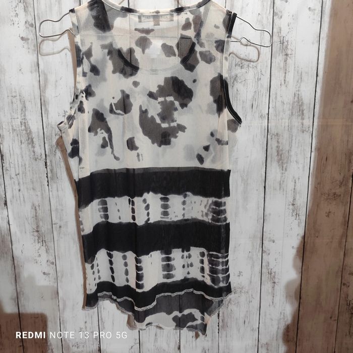 Haut en voile donc transparent idéal pour porter sur un maillot ou un débardeur un peu trop décolleté. Je tiens une boutique de seconde main de la naissance à la taille M. J'ai énormément d'articles si vous recherchez quelque chose en particulier n'hésitez pas à me contacter je commence à peine a publier quelques articles!! Les envois se font le mercredi et le samedi si commande la veille avant 18h pour une commande urgente contactez moi avant de passer commande.