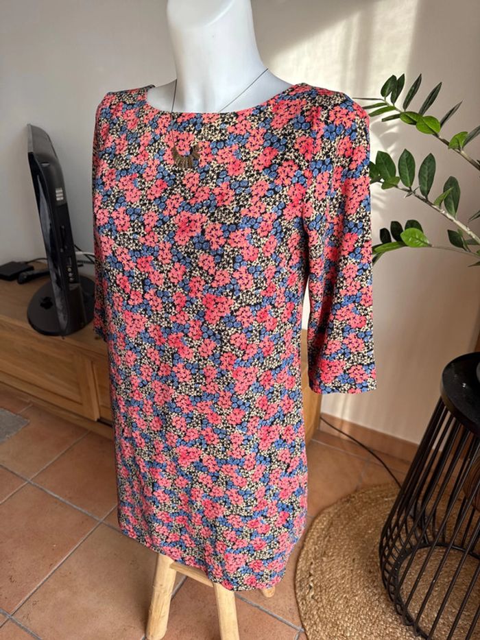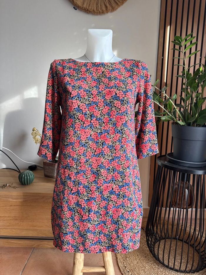 Robe motif fleurs Manches 3/4 Col rond Doublée Longueur épaule au bas 83 cm Au dessus du genou Peu portée, comme neuve Taille S #labrune_33femme #labrune_33femme36 #labrune_33femmerobe 📤 envoi rapide # dressing trié par genre et taille Réduction sur lot activée