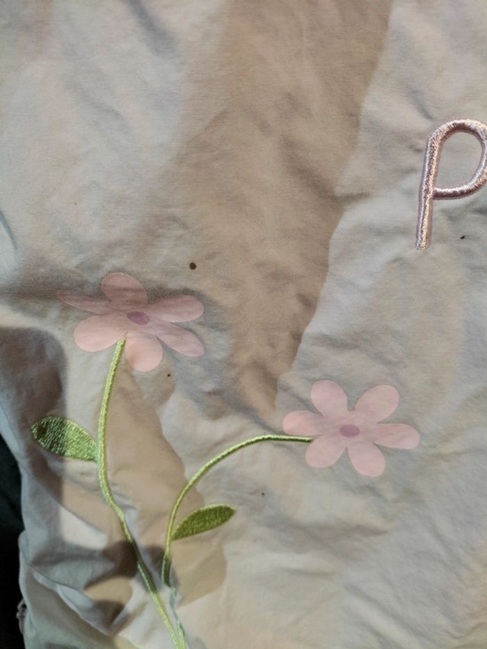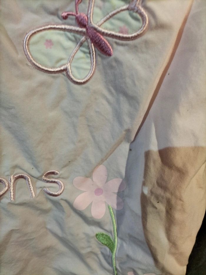 Nid d'ange fille, réglable de 6 à 24 mois. Le tissu est en très bon état, mais par contre,il y a quelques toutes petites tâches (les points noirs sur les photos).