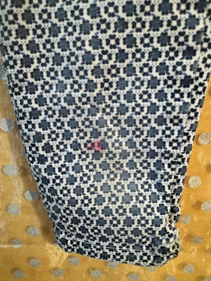 Joli pantacourt taille 7 ans,qui malheureusement a une tâche sur une jambe. Du coup,je rajouterai un petit quelque chose dans le colis.