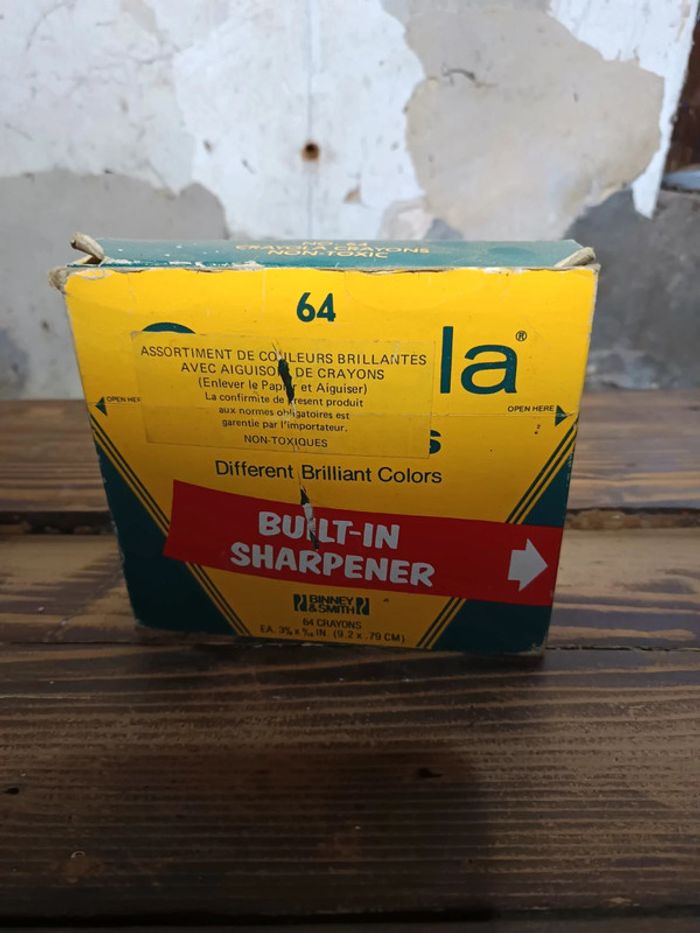 Boite de 63 crayons gras Avec taille crayon en façade de la boîte A la base boîte de 64 mais il en manque 1 . Quelques crayons ont été légèrement utilisés Et 1 est cassé Crayola Boite ancienne vintage Boite ancienne donc la boîte est un peu abîmée