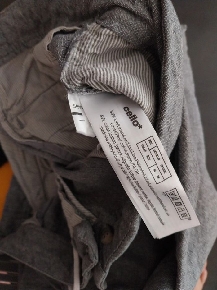 Pantalon été homme celio gris taille 48 coton et lin - photo numéro 2