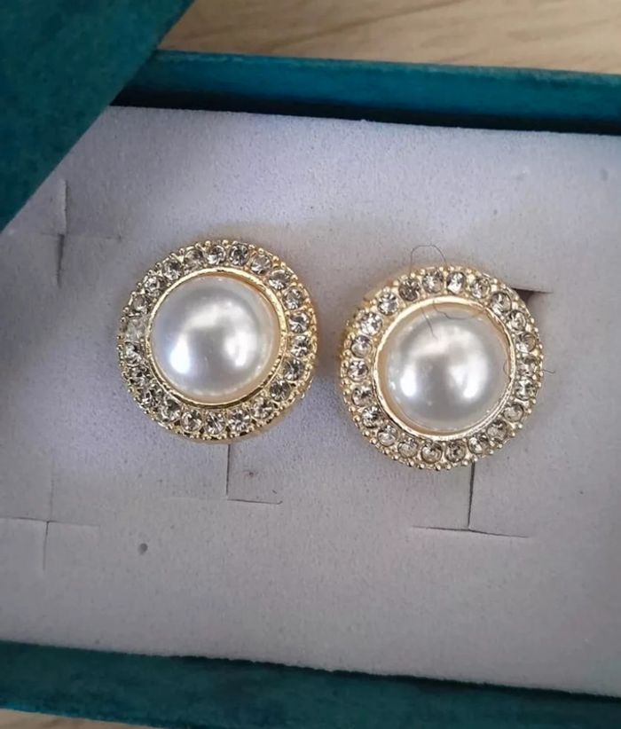 Elégantes boucles d'oreilles, strass, perle, dorées, style Fashion - photo numéro 1