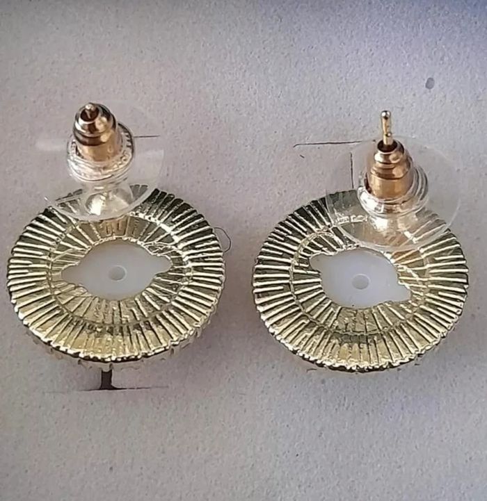 PRIX FERME - NON NEGOCIABLE - Merci Elégantes boucles d'oreilles, strass, perle centale blanche dorées en alliage de zinc pour oreilles percées diamètre : 1,5cm