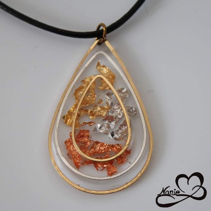 Pendentif en résine transparent avec des feuilles !! - photo numéro 1