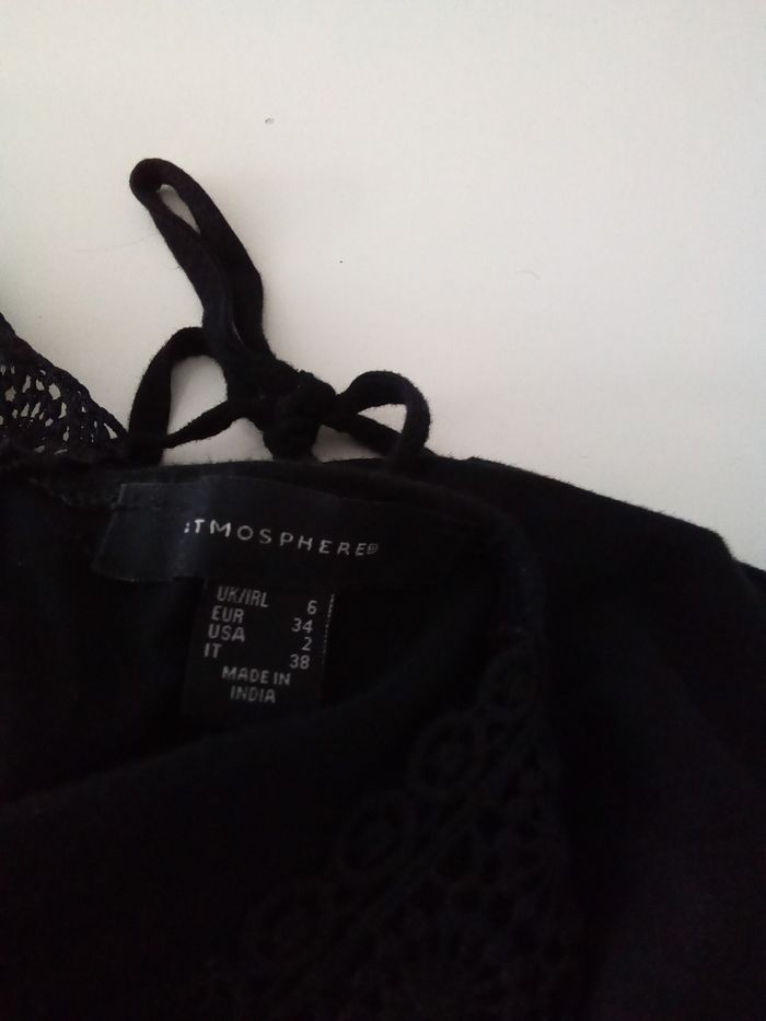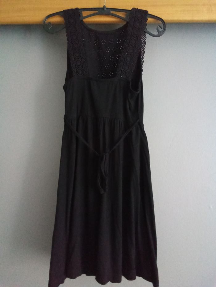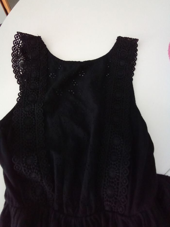 Robe noire 52% coton 48% viscose avec broderie anglaise 100% coton. Marquée 34 mais taille petit