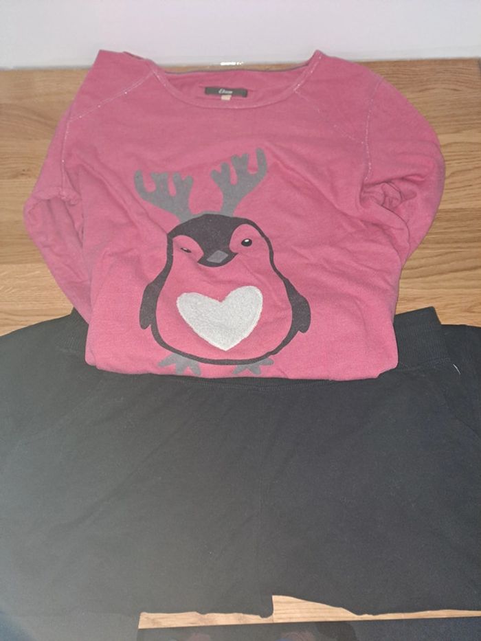 Jolie ensemble pyjama Un pantalon et tee-shirt manches longue Le haut un pigeon au niveau de l'avant Couleurs: pantalon noir et haut rose Marque: Etam Taille M N'hésitez pas à demander les mesures Porté plusieurs fois Au niveau du coeur la matière blanche est un peu decousu voir avant dernière photo Et au niveau du coude manque de petits strass voir dernière photo Pantalon à trappe les poils, cheveux.. #ellena50pyjama #ellena50vêtementsfemmesTM #etam #pyjama #ensemblepyjama #pyjamaetam Maison avec animaux