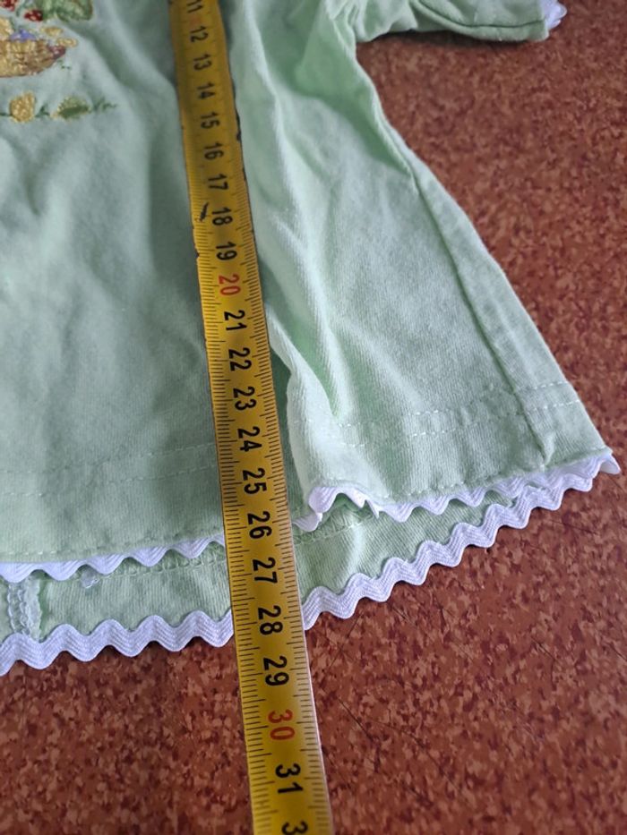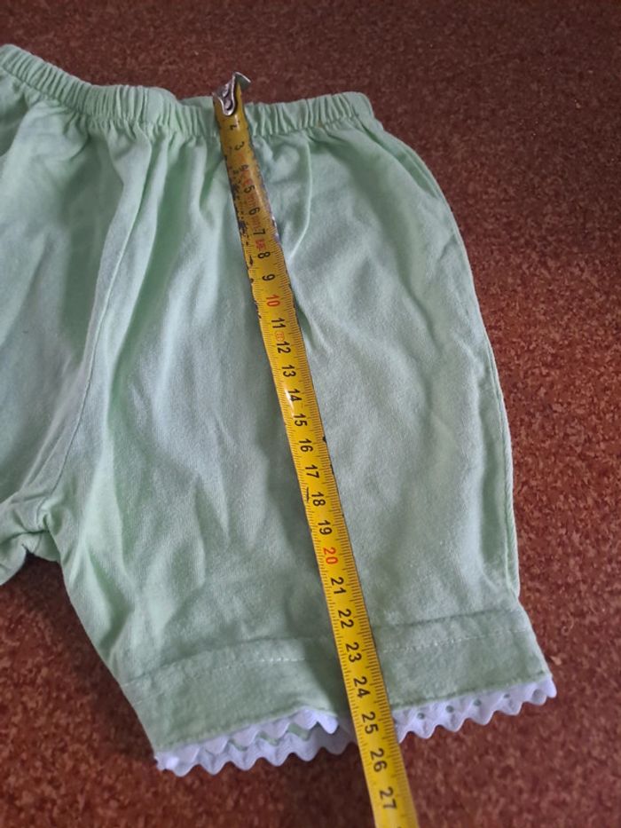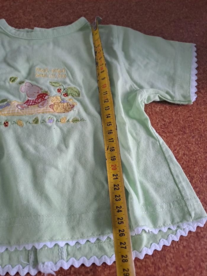 Ensemble short et tee-shirt Couleur: vert Marque: Aubisou Taille 6 mois Dimensions en photos Porté plusieurs fois Tâche sur le haut du tee-shirt et sur le bas du short Pression sur le tee-shirt abîmé et usée #ellena50vêtementsbébé