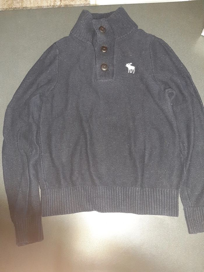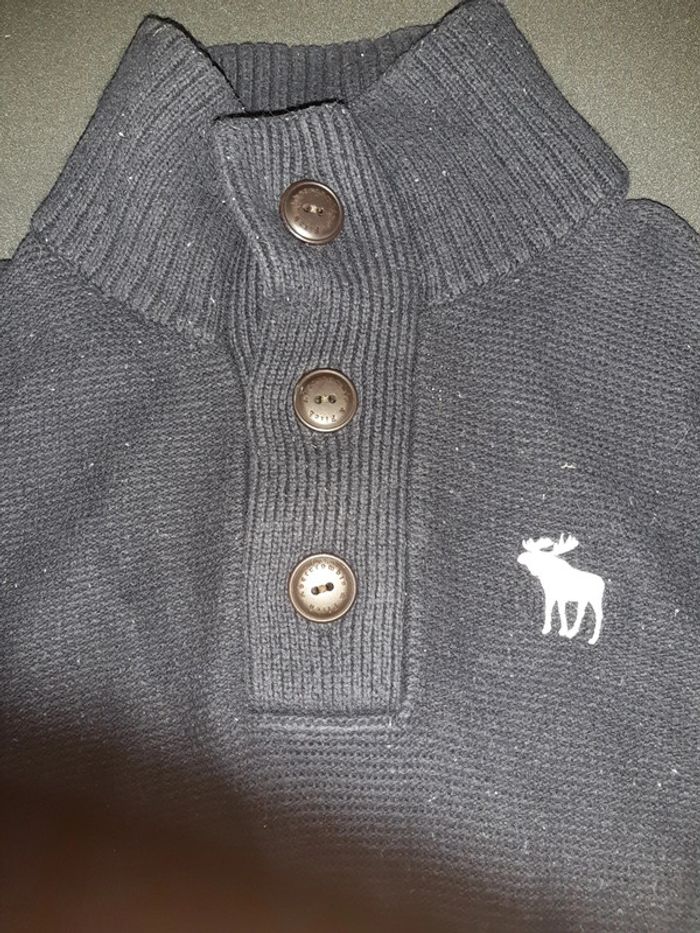 Pull avec petit col montant avec boutons Couleur: bleu marine Marque: Abercrombie & Fitch Taille L correct Porté plusieurs fois, peluche à certains endroits #ellena50vêtementshommesTL